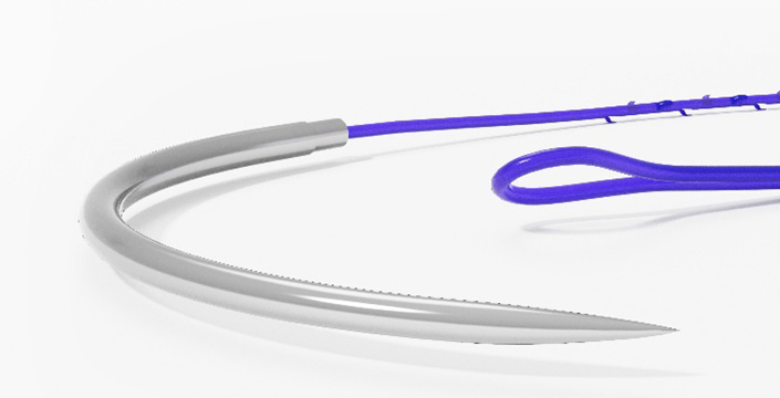 VSORB knotless tissue control device is PDO barbed suture providing a secure hold for tissue approximation. The strong tensile force of strand and the strong anchoring force of dual angle cut barbs suggest securer, more consistent and more efficient solution than conventional sutures. End loop and double needle available from USP size 4-0 to 2, from 14cm to 72cm.